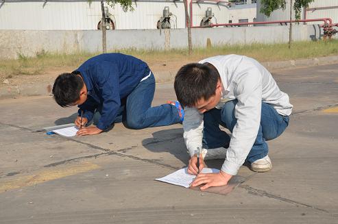 參賽員工按班分為四組,每組4人進行接力賽跑。這并不是普通的接力賽跑,其中還包括知識競答。