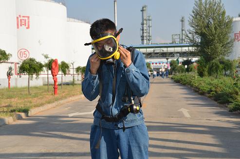 只見起跑線上,已有兩名參賽隊員做好了起跑準備,在一聲口令后,隊員奮力奔跑,將接力棒傳到下一名隊員手中,該名隊員除了賽跑,還需要回答早已準備好的專業(yè)知識問題。答題完畢后,隊員繼續(xù)將手中的接力棒送到下一名隊員手中,以此類推。最后一名隊員跑到終點后,還需背上空氣呼吸器,比賽方才結(jié)束。
